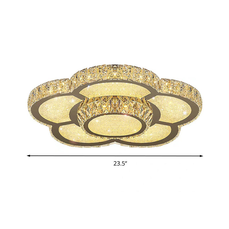 Modern White Clear Crystal Glass Flower Flush Mount Led Ceiling Light - 14/18/23.5 Warm/White Remote