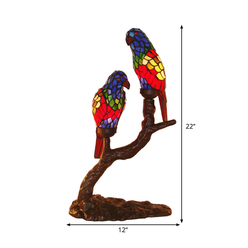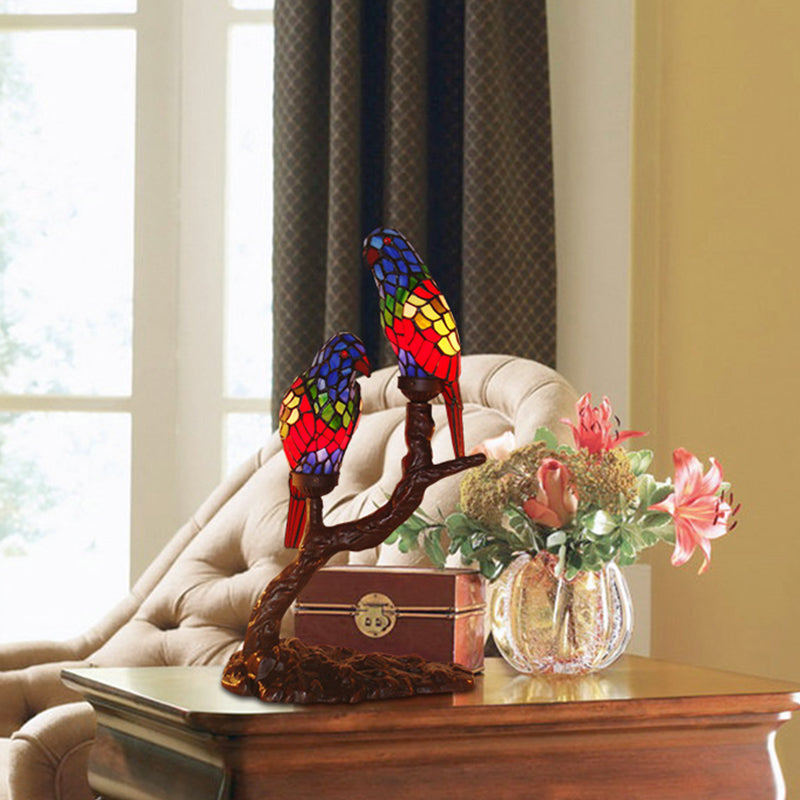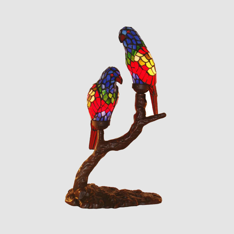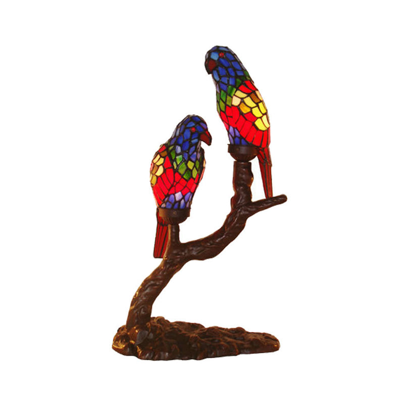 Tiffany Blue Branching Nightstand Light with Parrot Cut Glass Shade, Set of 2