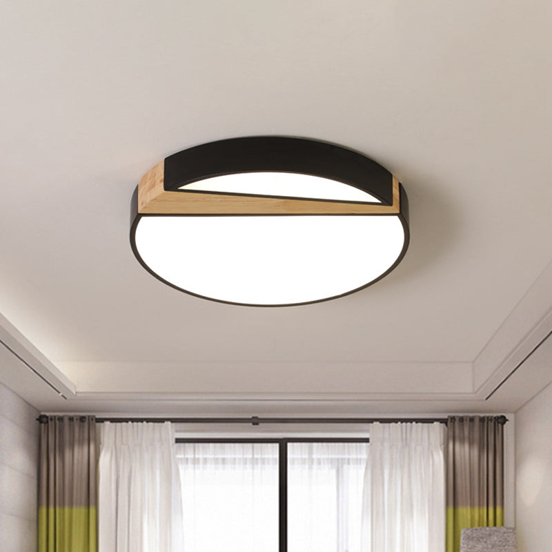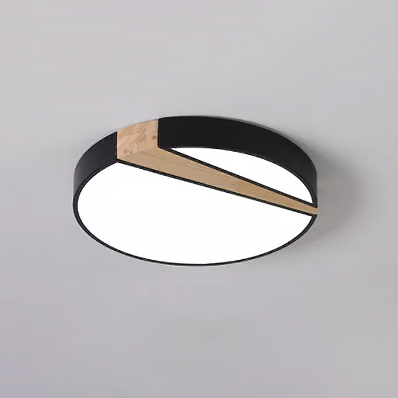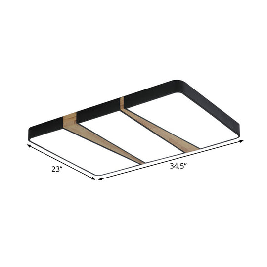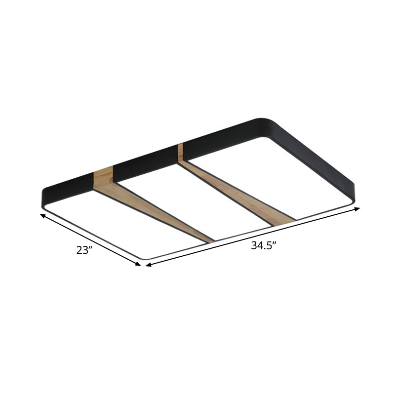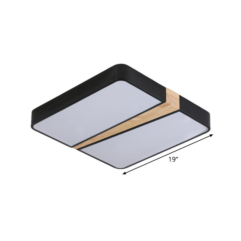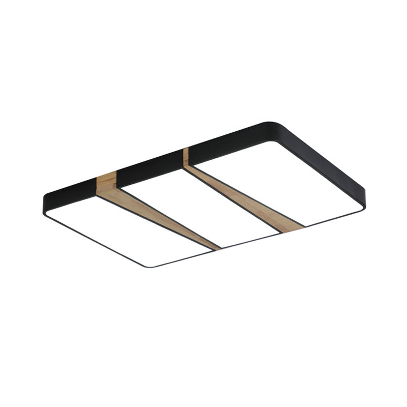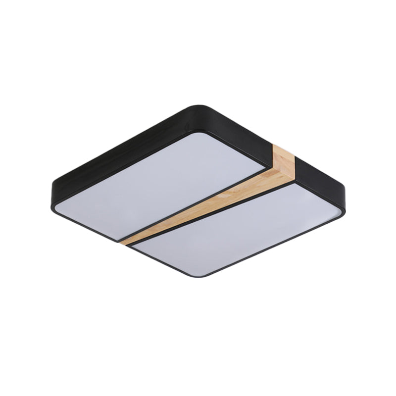 Modern Acrylic LED Ceiling Light with Black-Wood Spliced Design - Square/Rectangle/Round Options in White/3 Color Light