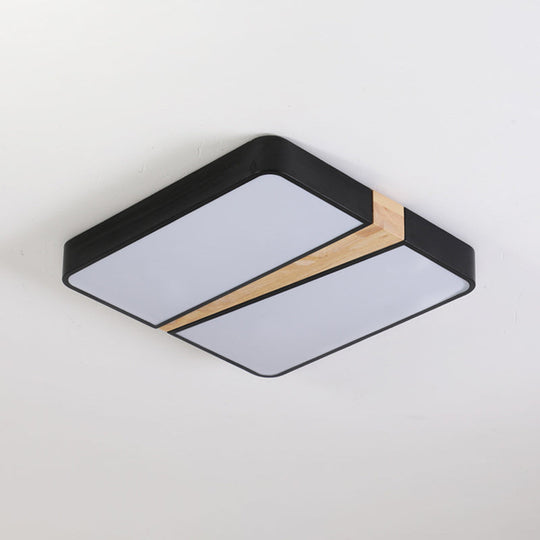 Modern Acrylic Led Ceiling Light With Black-Wood Spliced Design - Square/Rectangle/Round Options In