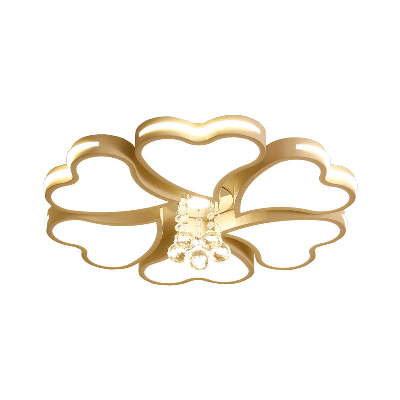 Modernist Heart Flush Light Metallic Ceiling Fixture with Crystal Accent - White, 6/8 Bulbs