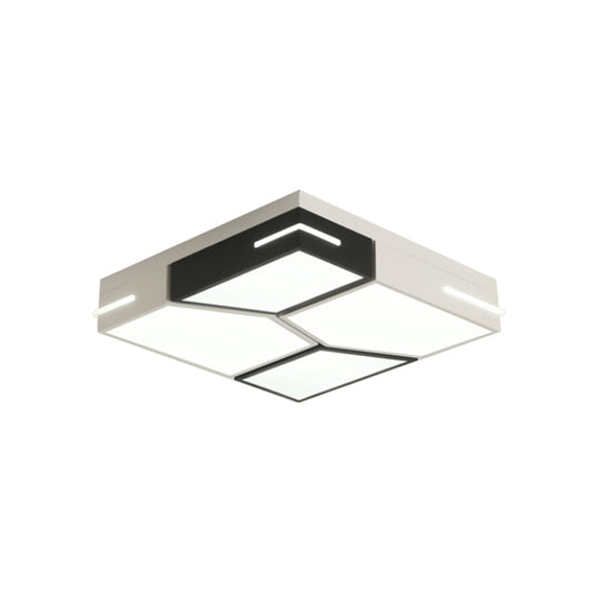 Minimalist Black And White Spliced Metal Ceiling Lamp - Led Flush Mount Light For Parlor / Square