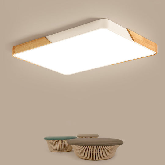 Nordic Led Flush Light: Splicing Square/Rectangle Acrylic Wood-White Ceiling Mount Lamp In
