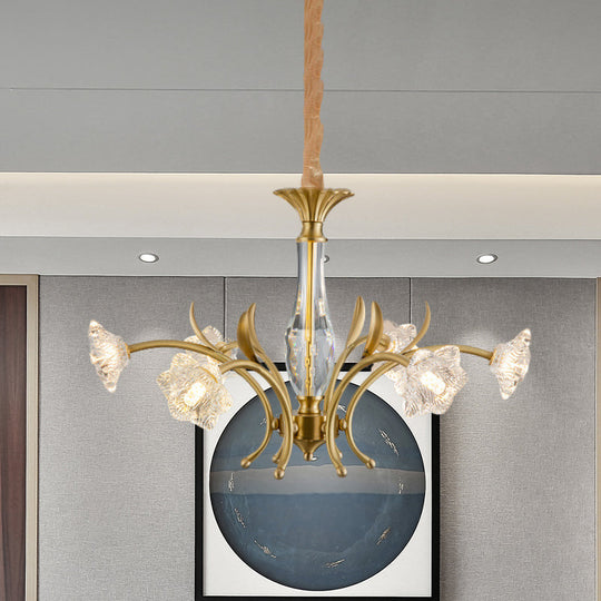 6-Light Gold Crystal Flower Chandelier Pendant Lamp for Dining Table