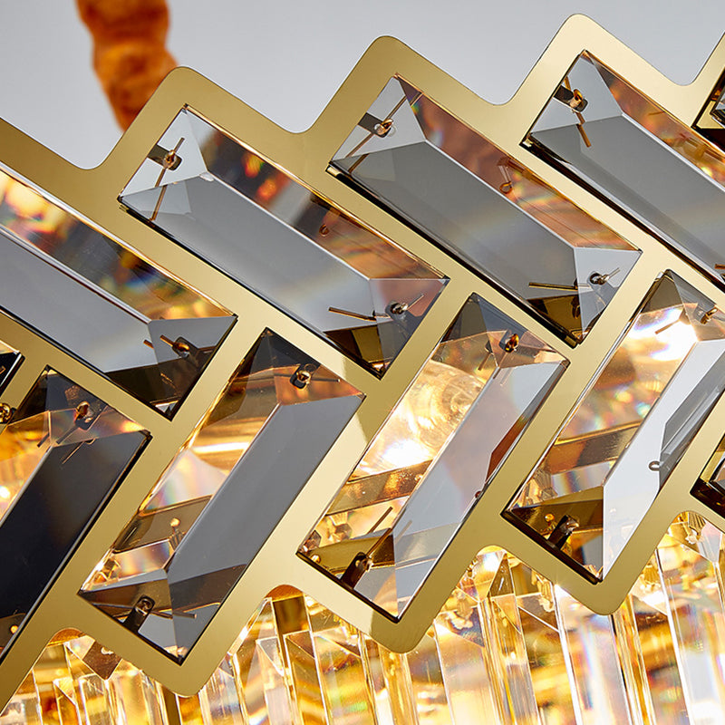 Prismatic Crystal Round Chandelier Light - Stylish Stainless-Steel Suspension Lighting for Living Room