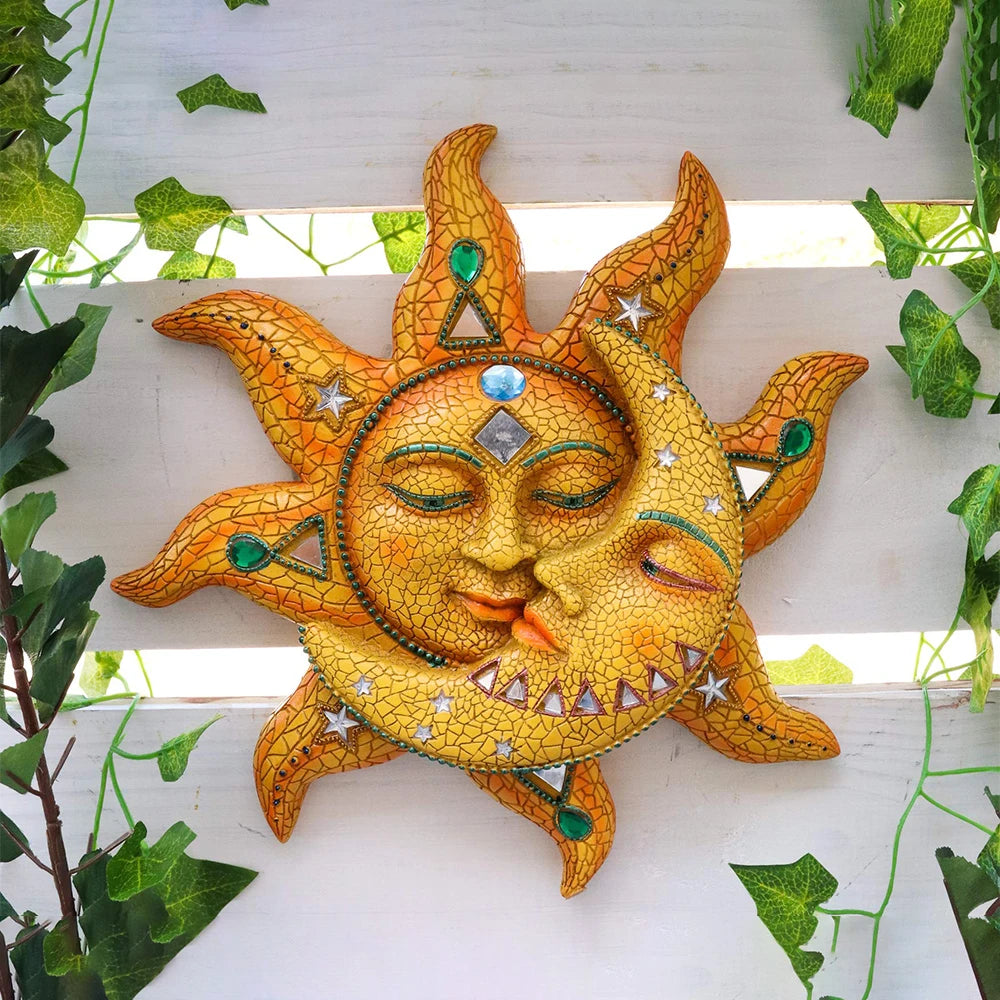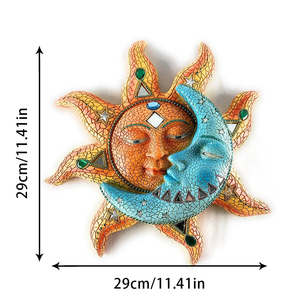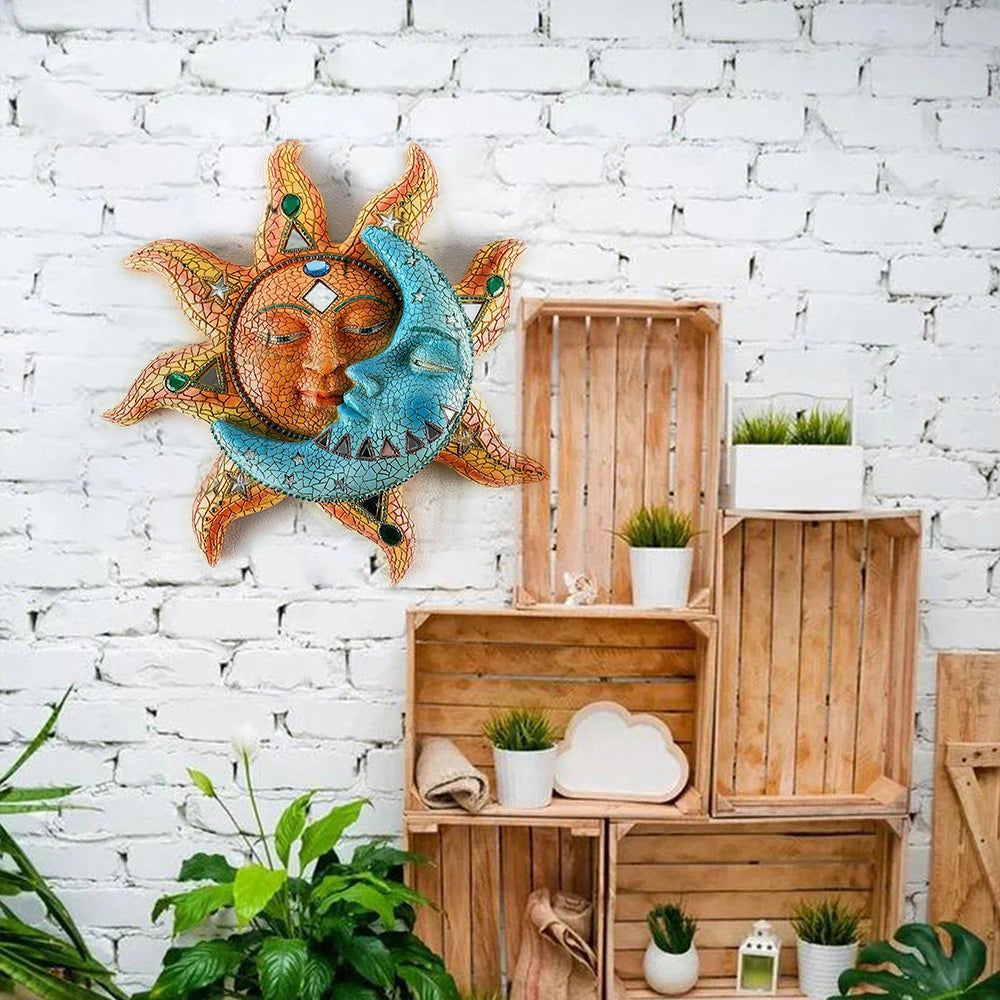 Colorful Metal Carving Celestial Mosaic Sun and Moon Wall Hanging Ornament Plaque Sculpture for Indoor Outdoor Home Wall Decor