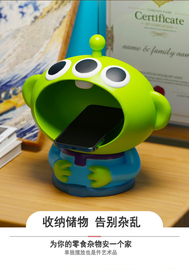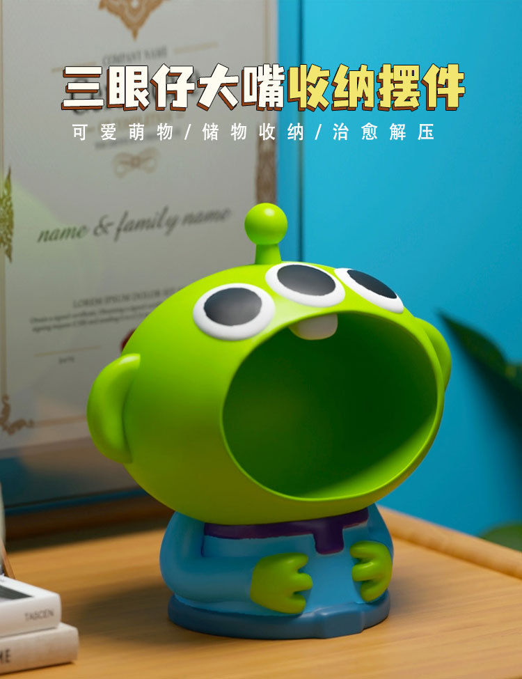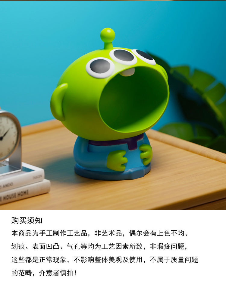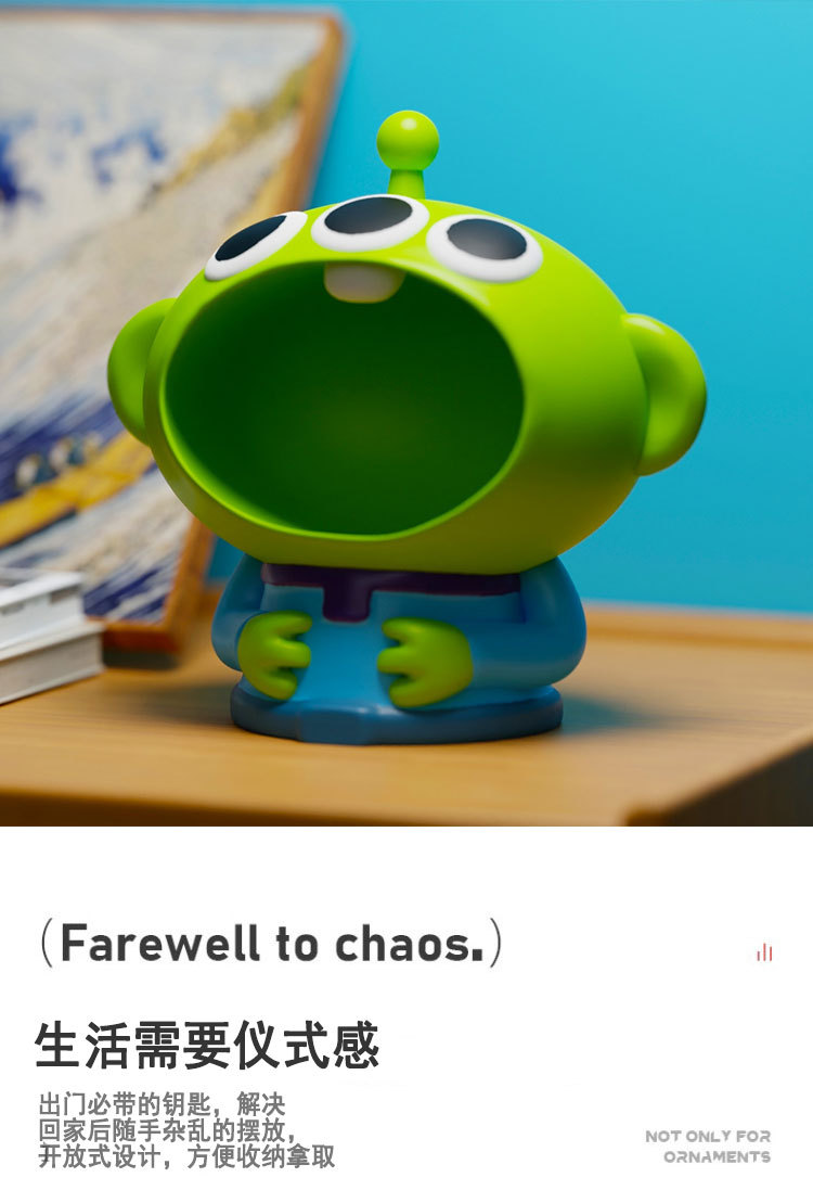 Elevate your desk decor with Emma's Creative Alien Desktop Storage Statue. Crafted from high-quality resin, this unique sculpture doubles as a practical storage tray for your keys. Its cartoonish design and kawaii aesthetic make it a charming addition to any modern living space.