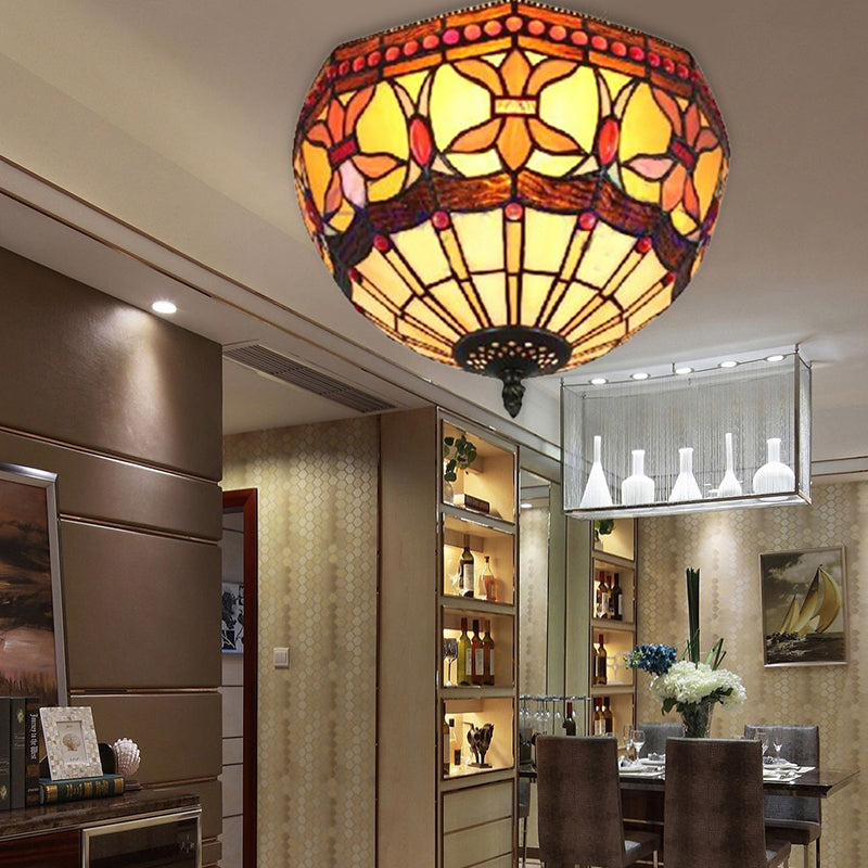 Vintage Industrial Stained Glass Flush Mount Ceiling Lights with 2 Bulbs