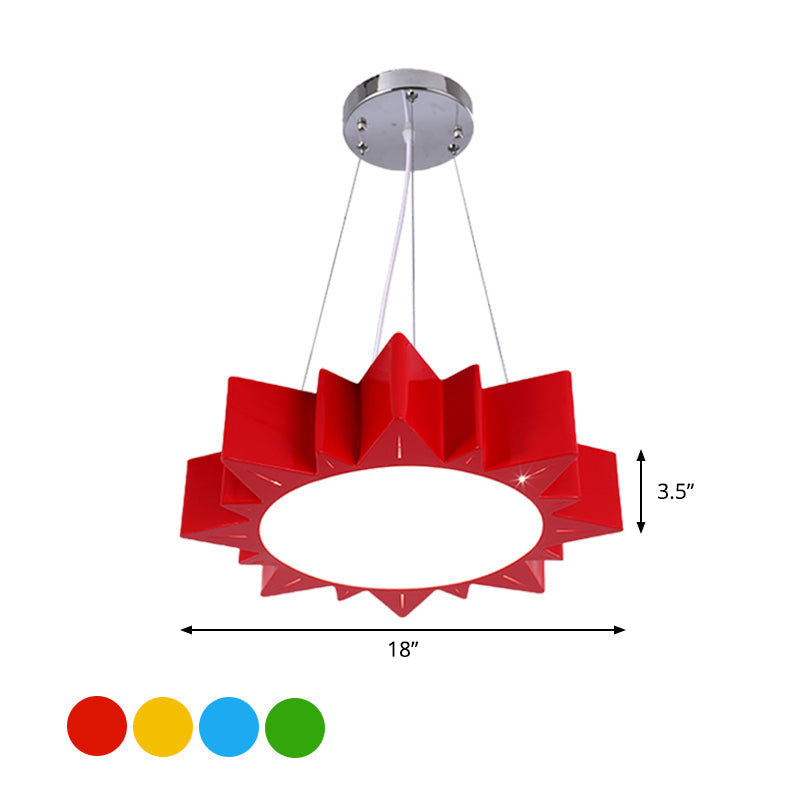 Kids Style LED Chandelier Light for Hallway - Sun Ceiling Hang Fixture in Acrylic Yellow/Blue/Green