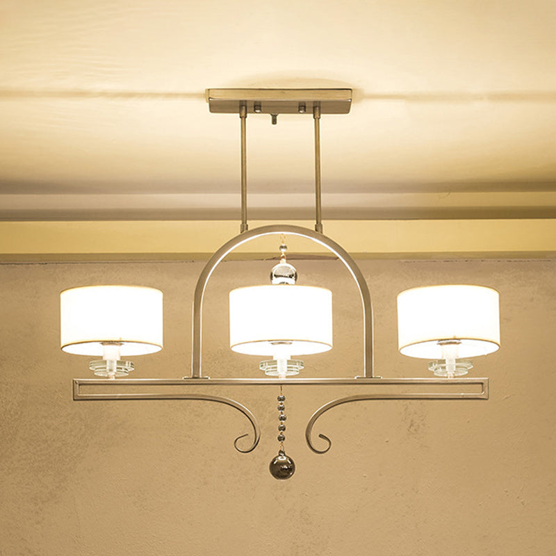 This 3-light island pendant light is a traditional drum style hanging lamp in gold, perfect for your living room. The fabric shade and elegant gold finish give it a luxurious look, while the 3 lights provide ample illumination. The lamp is also dimmable, so you can create the perfect atmosphere for any occasion. It runs on 220V-240V or 110V-120V and uses an E12/E14 bulb base.