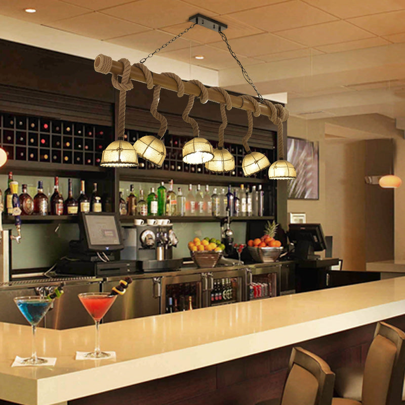 Farmhouse Wood Bowl Shade Pendant Lighting with 6 Fabric Island Lights for Restaurants
