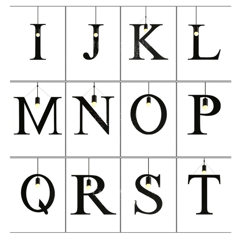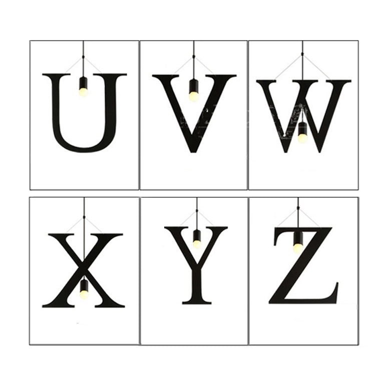 Industrial Black Stainless Steel Letter Pendant Light Fixture For Bedroom