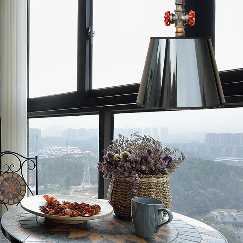 Rustic Iron Water Pipe Ceiling Light With Conic Shade - 1 Pendant Fixture For Bedroom