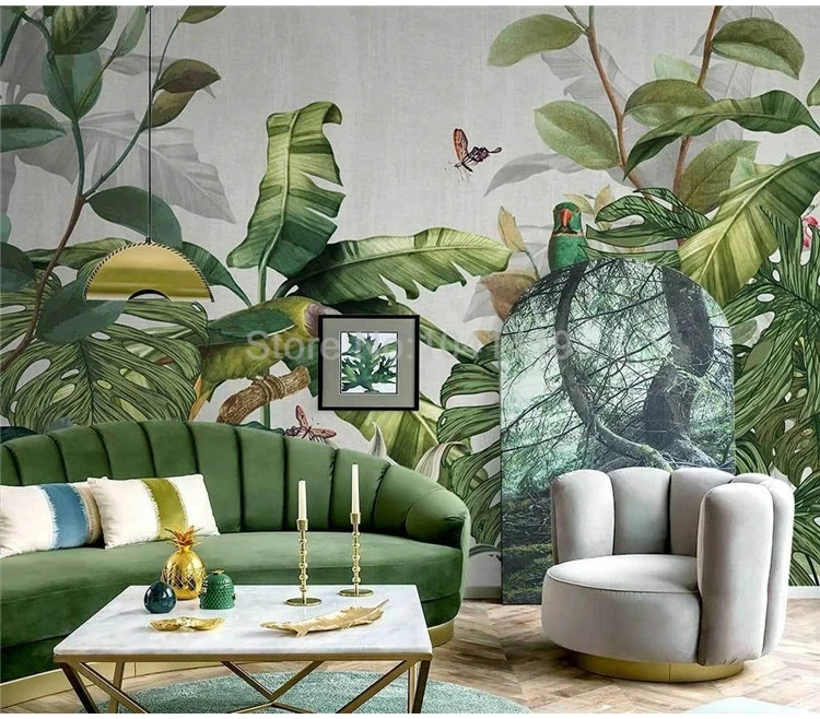 Transform your space into a lush oasis with our Custom Mural Wallpaper featuring hand-painted tropical rainforest scenery. This stunning mural brings the vibrant colors and exotic foliage of Southeast Asia's jungles right into your home.