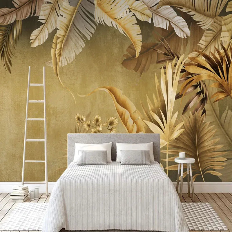 Emily's Transform Your Space with Custom 3D Golden Leaf Mural Wallpaper