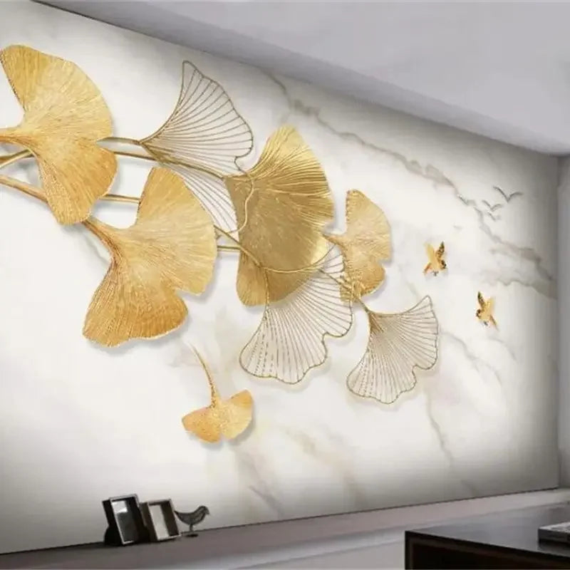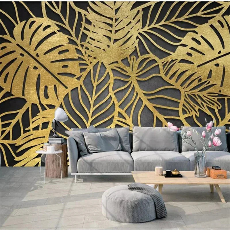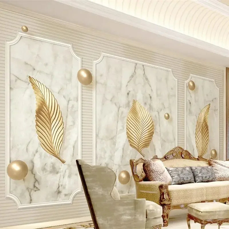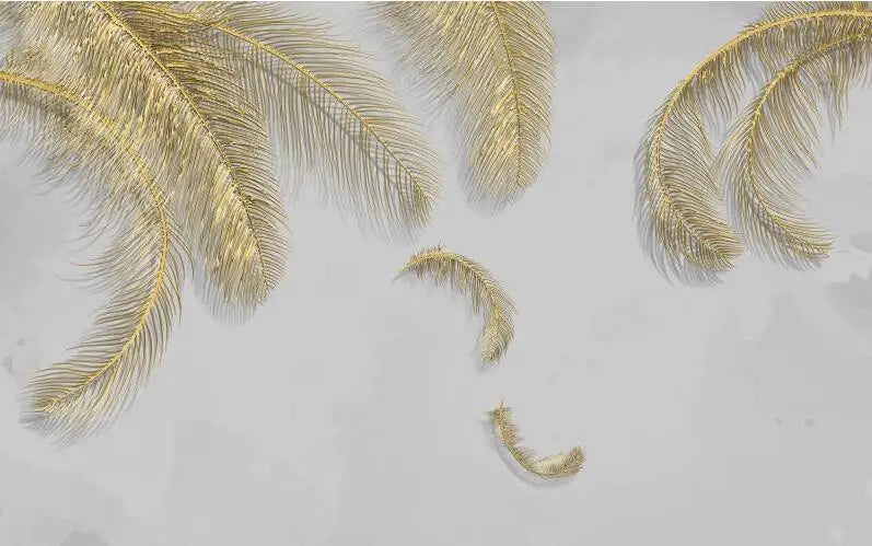 Transform your living space into a realm of elegance and luxury with this custom mural 3D wallpaper. Featuring a popular Nordic style, it exudes sophistication with its feather and gold embossed lines design, creating a captivating background wall that elevates any room.
