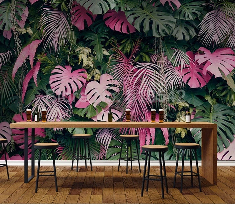 Transform your living space into a vibrant oasis with Mia's Custom Mural Papel De Parede 3D Wallpaper. This stunning wallpaper features a modern design with pink and green tropical rainforest plant leaves, adding a touch of natural beauty to your home decor. Perfect for the living room, bedroom, study room, kids' room, wedding house, or elders' room, this wallpaper is customizable to fit your space perfectly. Choose from seven available materials, including waterproof canvas, waterproof silk cloth, straw texture, imitation leather, 3D relief, self-adhesive canvas, or self-adhesive PVC. Enhance the ambiance of any room with Mia's exquisite wallpaper.