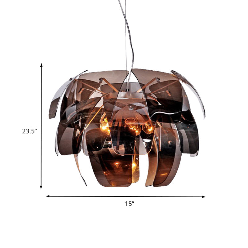 Modernist Smoke Gray Glass Chandelier - Flower Living Room Pendant Light With 4 Bulbs