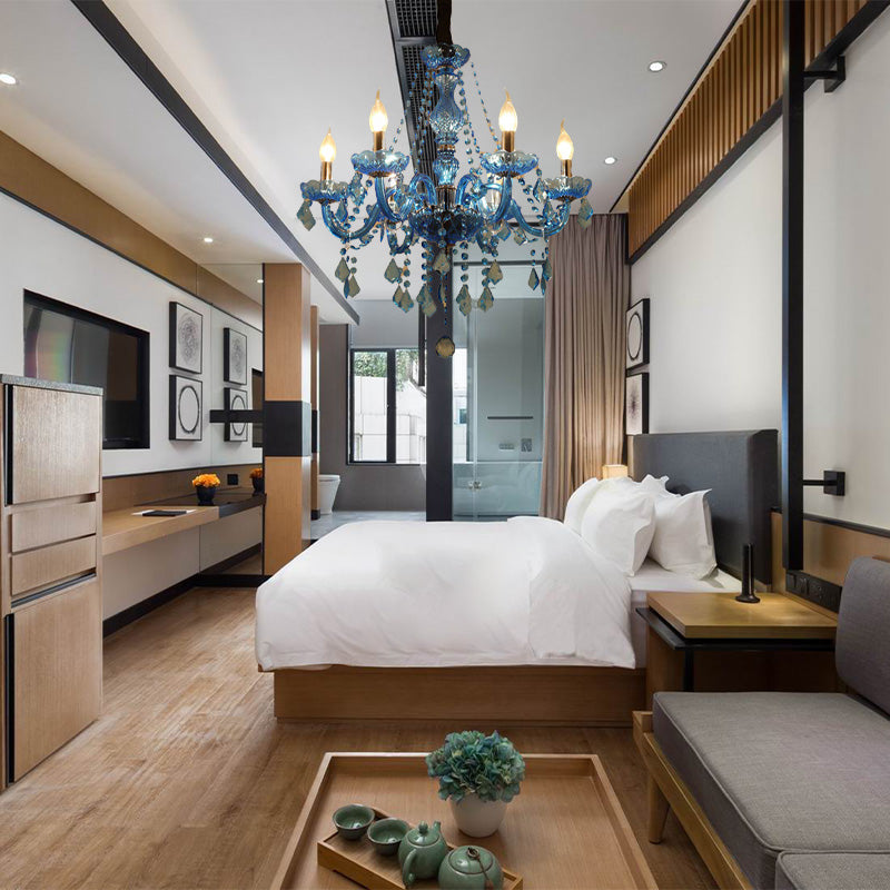 Modern Crystal Pendant Chandelier With Blue Hanging Light - 6/18 Bulbs Candle/Bell Design