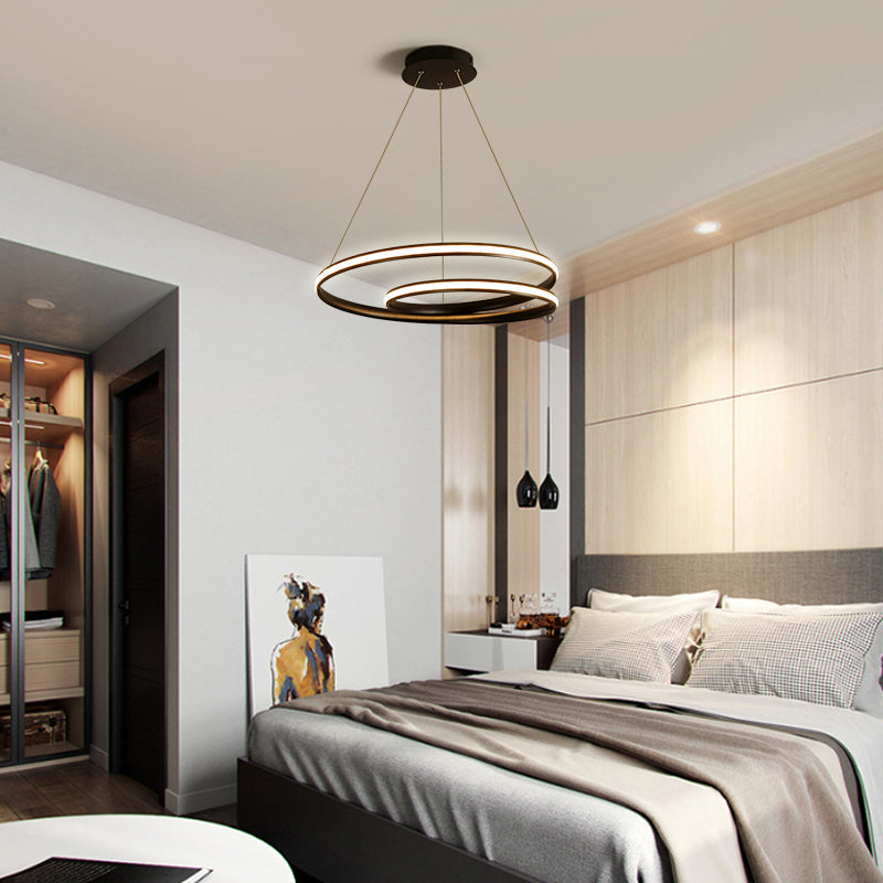 Minimalist Aluminum Led Chandelier - Loop Shape Dining Room Suspension Light