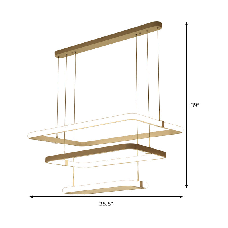 Minimalist White Led Pendant Light Kit - Rectangle Metal Chandelier Warm/White