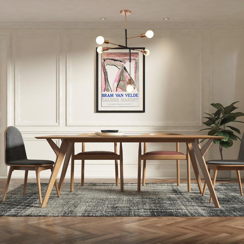 Lustre moderne en métal rectiligne à 5 lumières : plafonnier suspendu à ampoule nue blanc/noir pour salle à manger