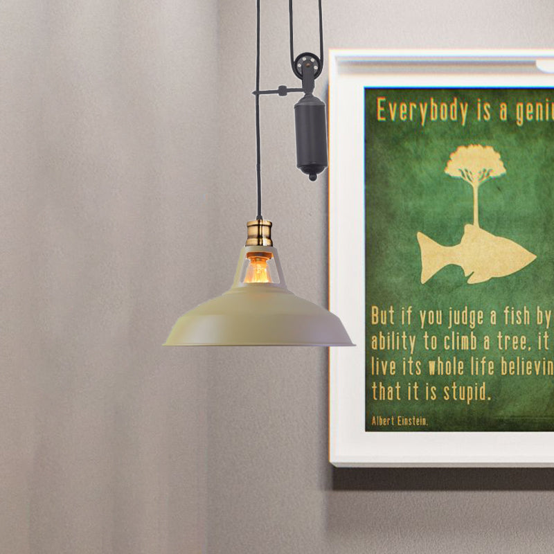 Farmhouse Style Ceiling Barn Pendant Lamp - Rustic Metallic Hanging Light With Pulley For Bedroom