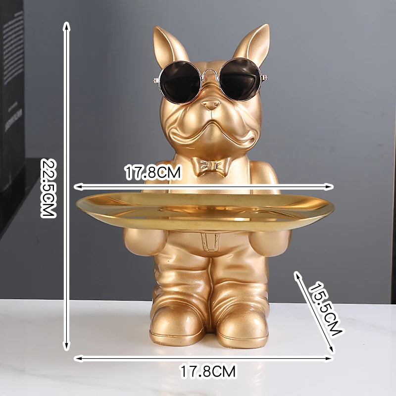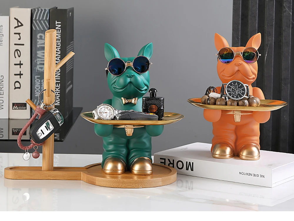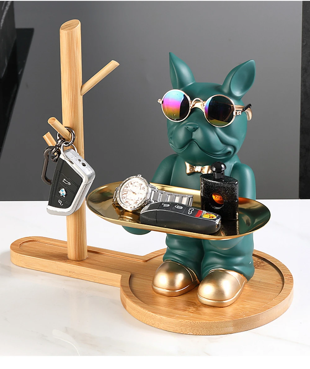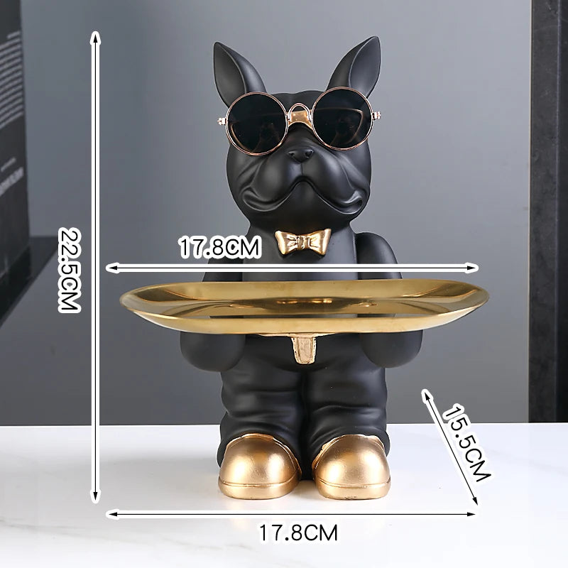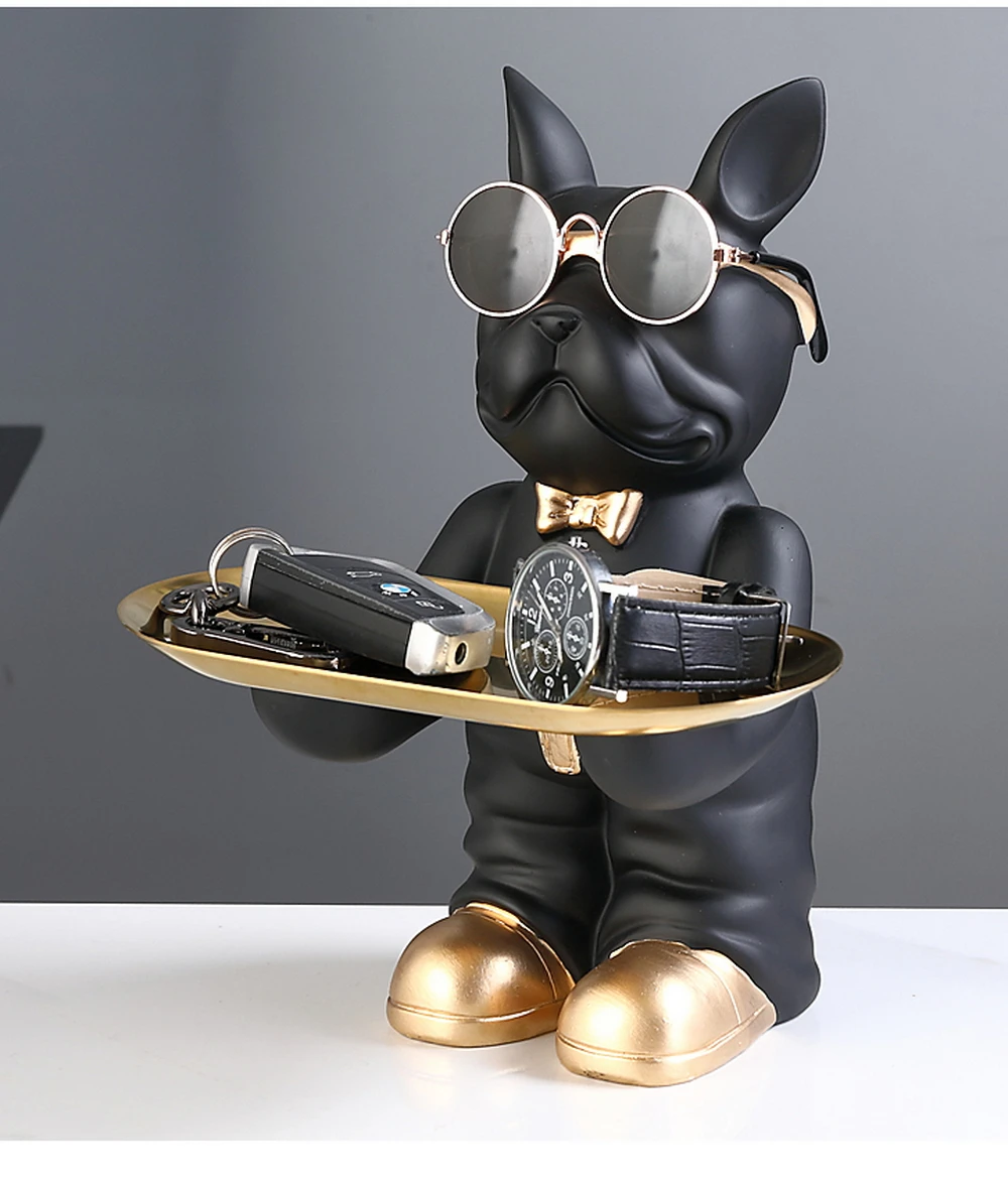 * Décoration bouledogue français et fonction de rangement sur plateau en métal