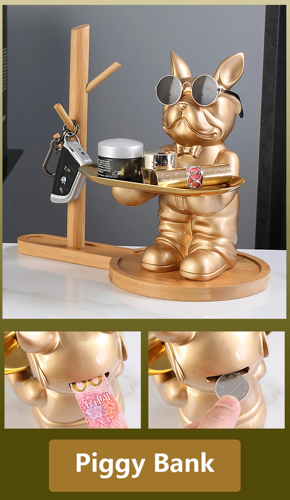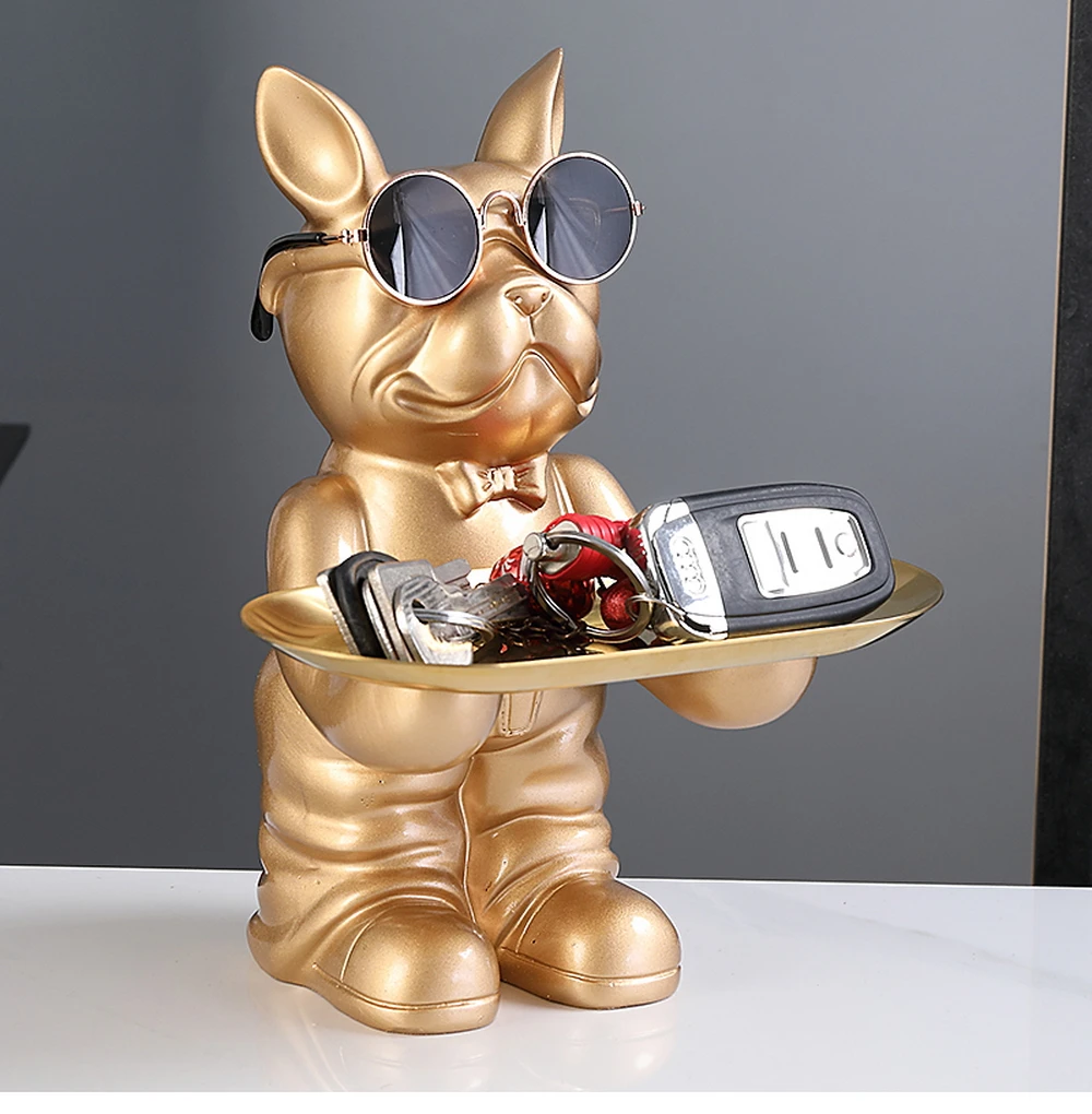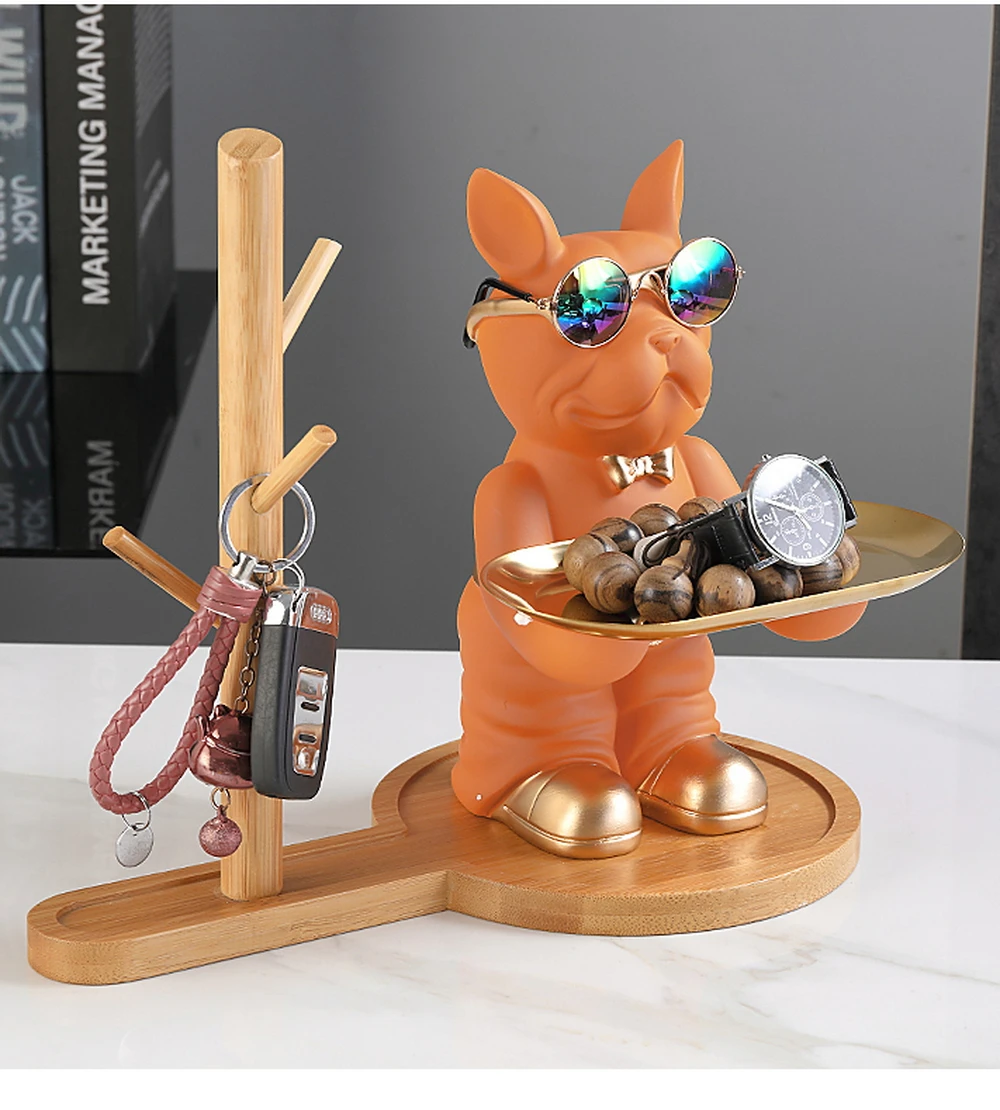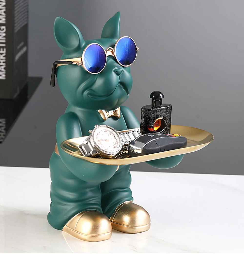 * Décoration bouledogue français et fonction de rangement sur plateau en métal