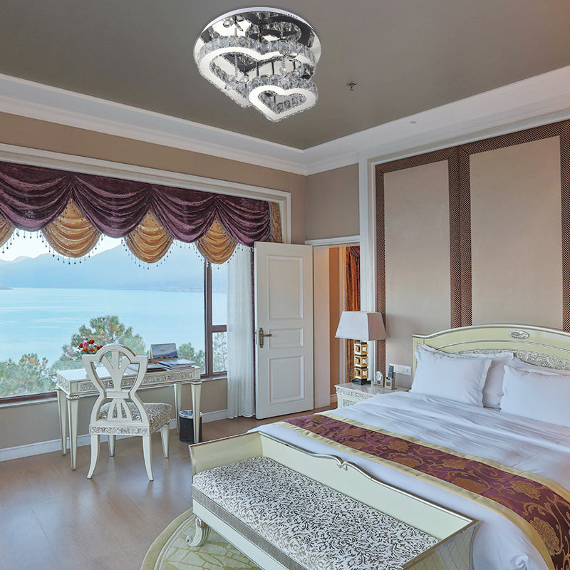 Plafonnier LED semi-encastré en cristal moderne Heart - 19,5"/23,5" - Éclairage clair chaud/blanc - Monture chromée