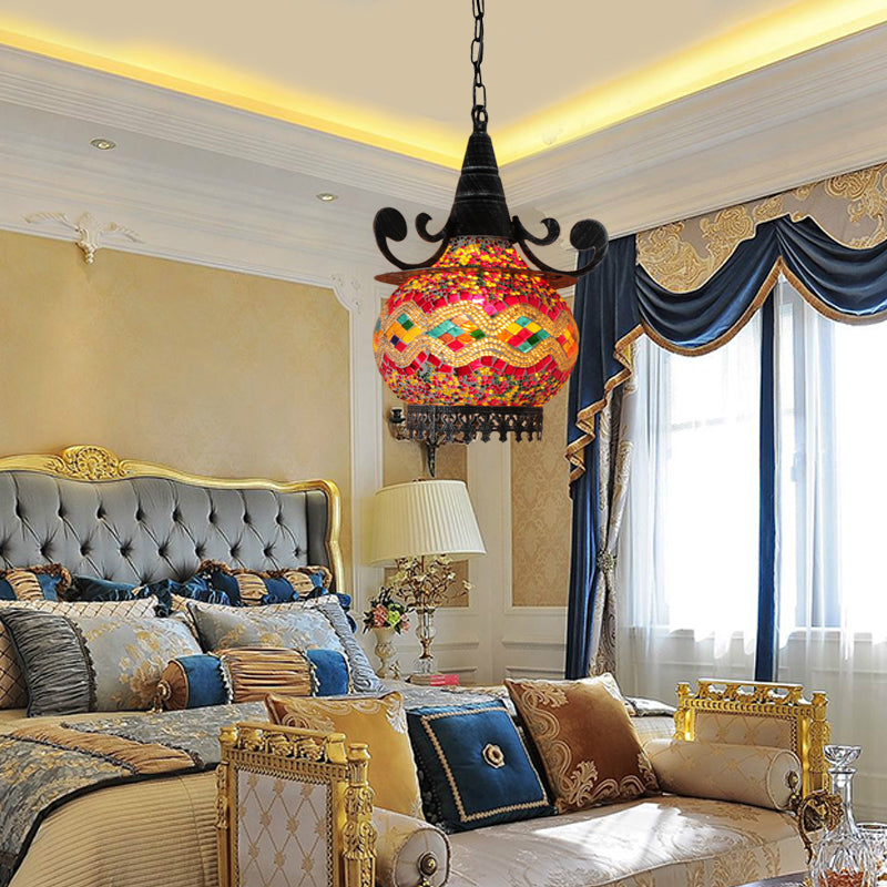Handcrafted Bohemia Stained Glass Pendant Ceiling Light - Beige/Yellow/Green Red-Blue
