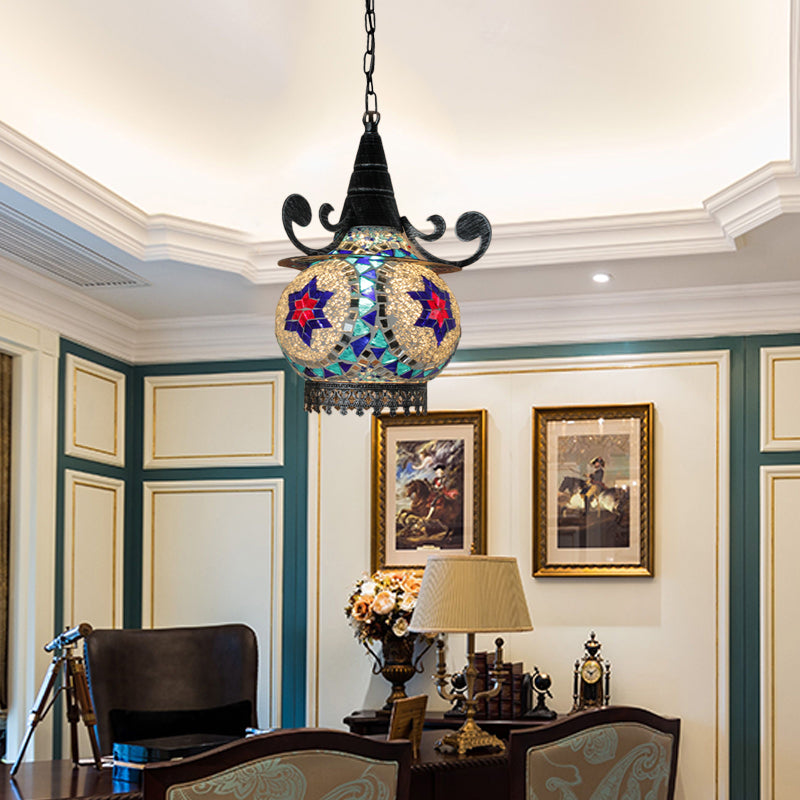 Handcrafted Bohemia Stained Glass Pendant Ceiling Light - Beige/Yellow/Green Royal Blue