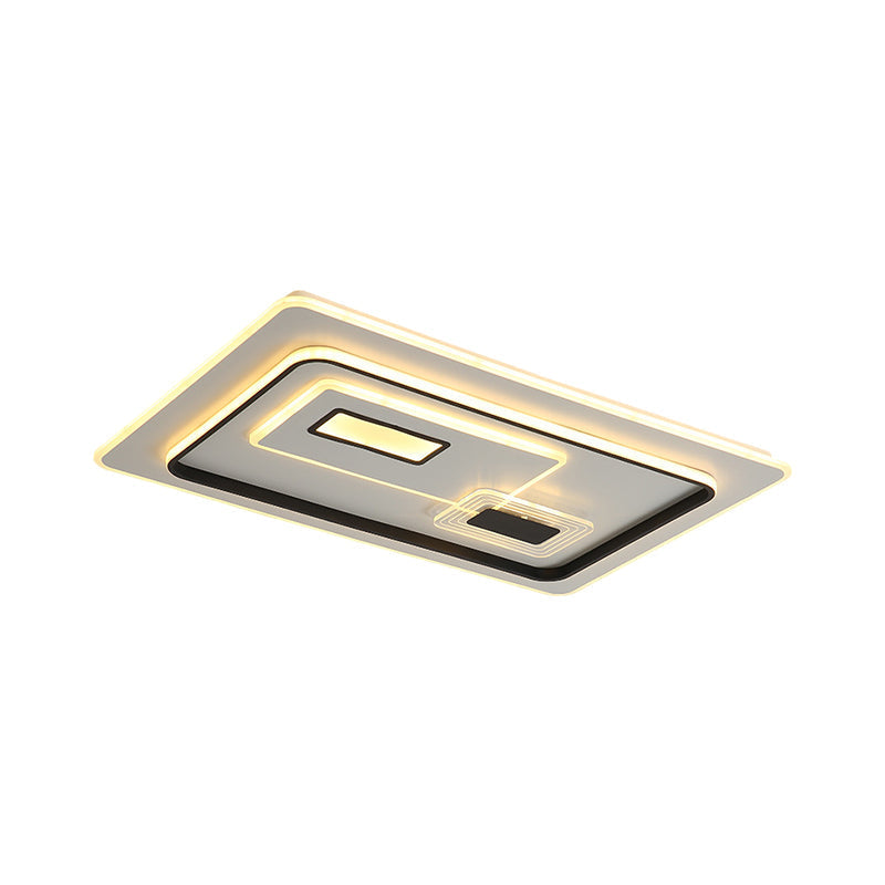 Led Minimalist Black Flush Mount Ceiling Lamp With Metal Rectangle Shade Warm/White Light Options
