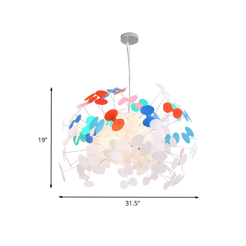 Lampe suspendue élégante en forme de papillon macaron avec 8 ampoules en fer – Blanc, rouge et bleu pour suspension de salon