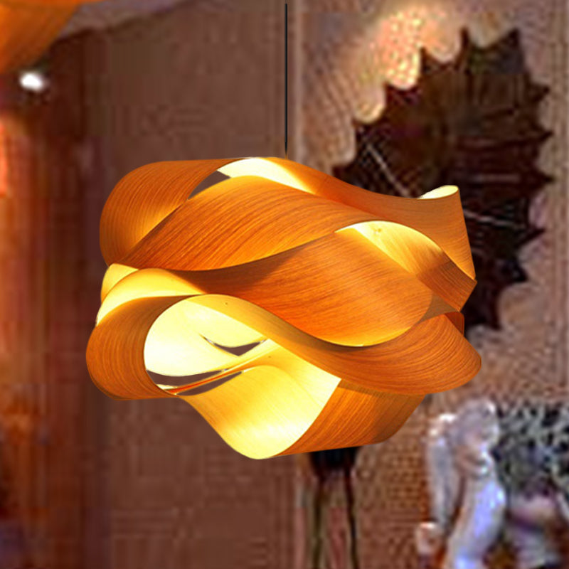 Lampe suspendue torsadée en bois chinois - 18"/23,5" de large - Luminaire suspendu beige avec 1 ampoule