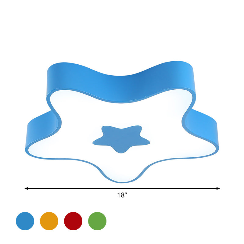 Led Kids Flush Mount Lighting - Star Kindergarten Acrylic Light In Red/Yellow/Blue Green