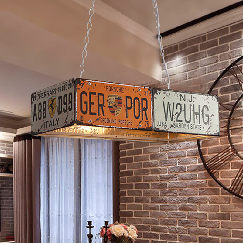 Lampe suspendue métallique rouge : plafonnier rectangulaire à 3 lampes pour salle à manger