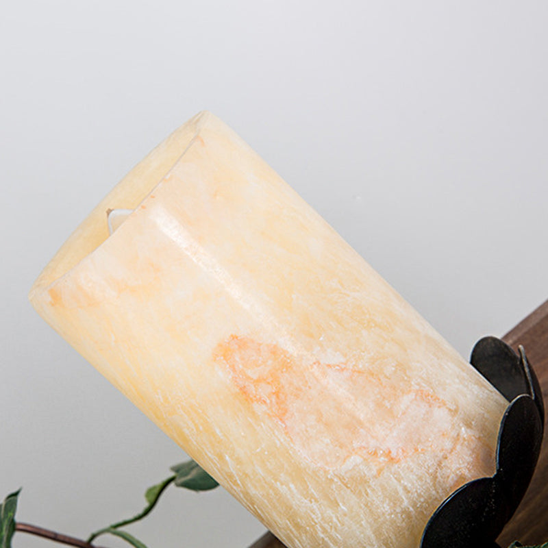Lustre linéaire en bois de style ferme avec 4 têtes brunes et abat-jour cylindrique