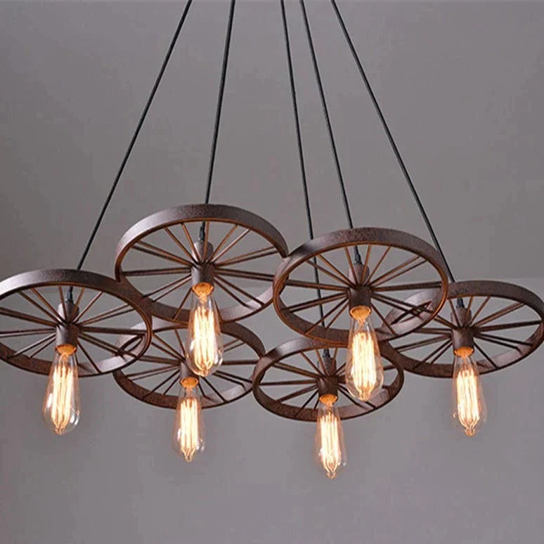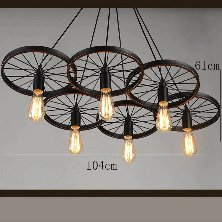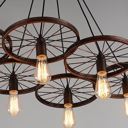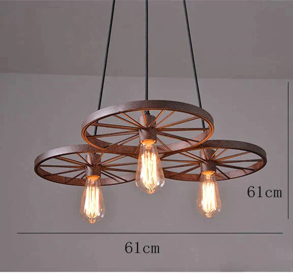 Lustre à roue antique Personnalité créative Lustre rétro en fer forgé pour restaurant et bar