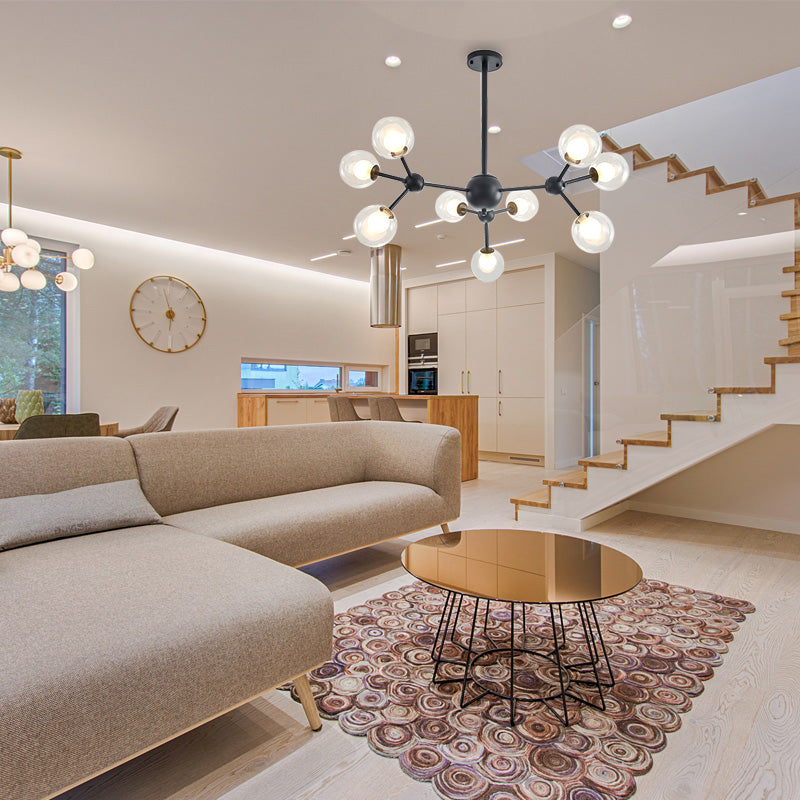Modern Clear Glass Bubble Chandelier with Starburst Design - 9/12/15 Lights Hanging Light Fixture in Black/Gold