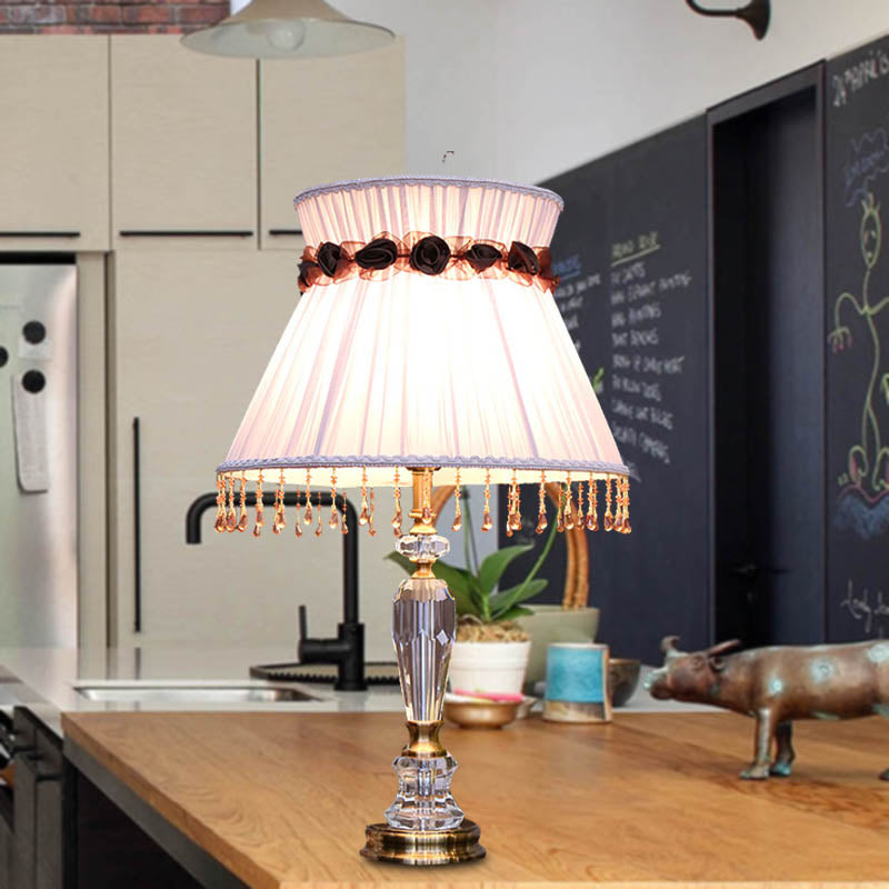 Minimalistic Light Purple Nightstand Lamp With Crystal Draping
