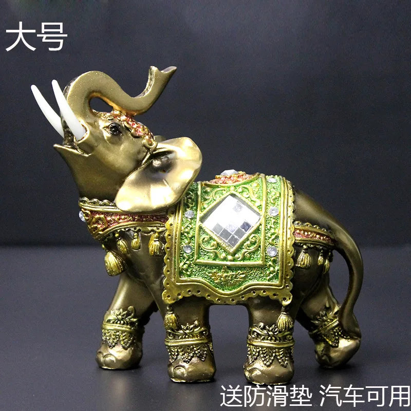 Elephant Statue, Lucky Feng Shui Green Elephant Sculpture Wealth Figurine for Home Office Decoration Gift