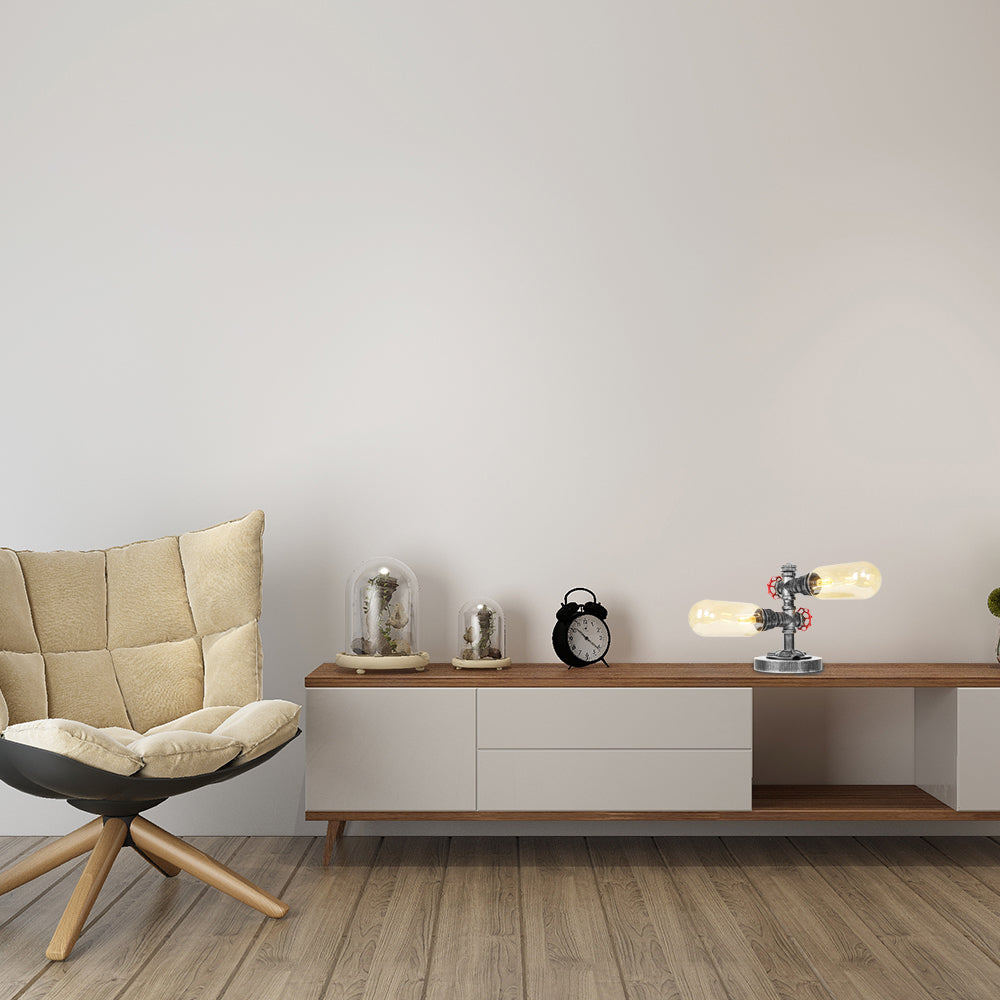 Clear/Amber Glass Antique Silver 2-Light Industrial Desk Lamp with Capsule Shade - Perfect for Living Room