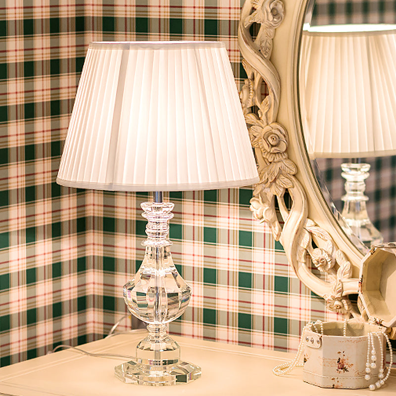 Modernism Urn-Shaped Crystal Nightstand Lamp with Hand-Cut Task Lighting - Beige
