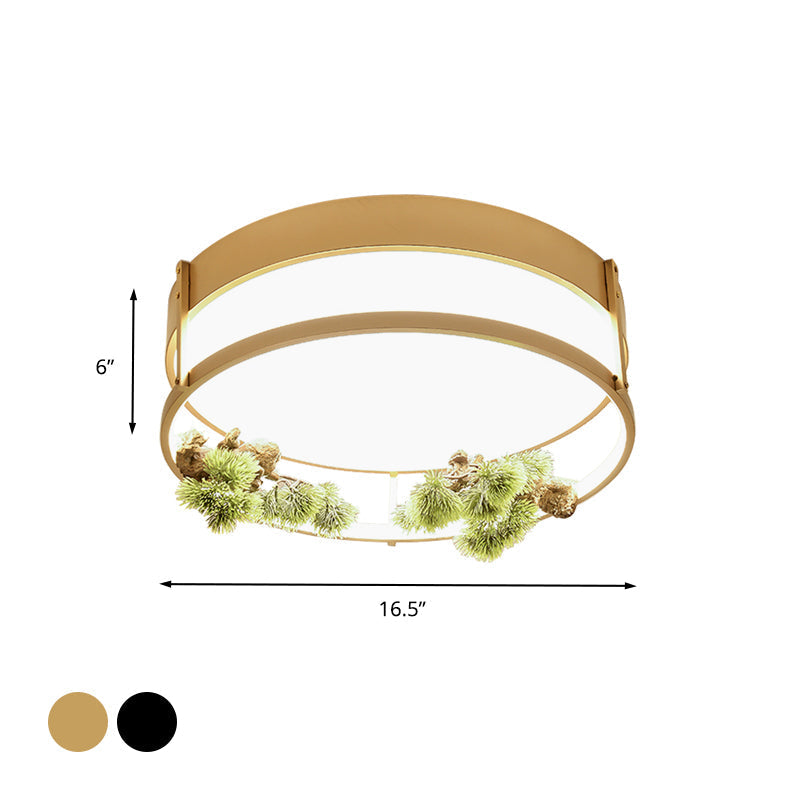 Industrial Black/Gold LED Flush Mount Ceiling Light for Bedroom - 16.5"/20.5" Square/Round Metal Design