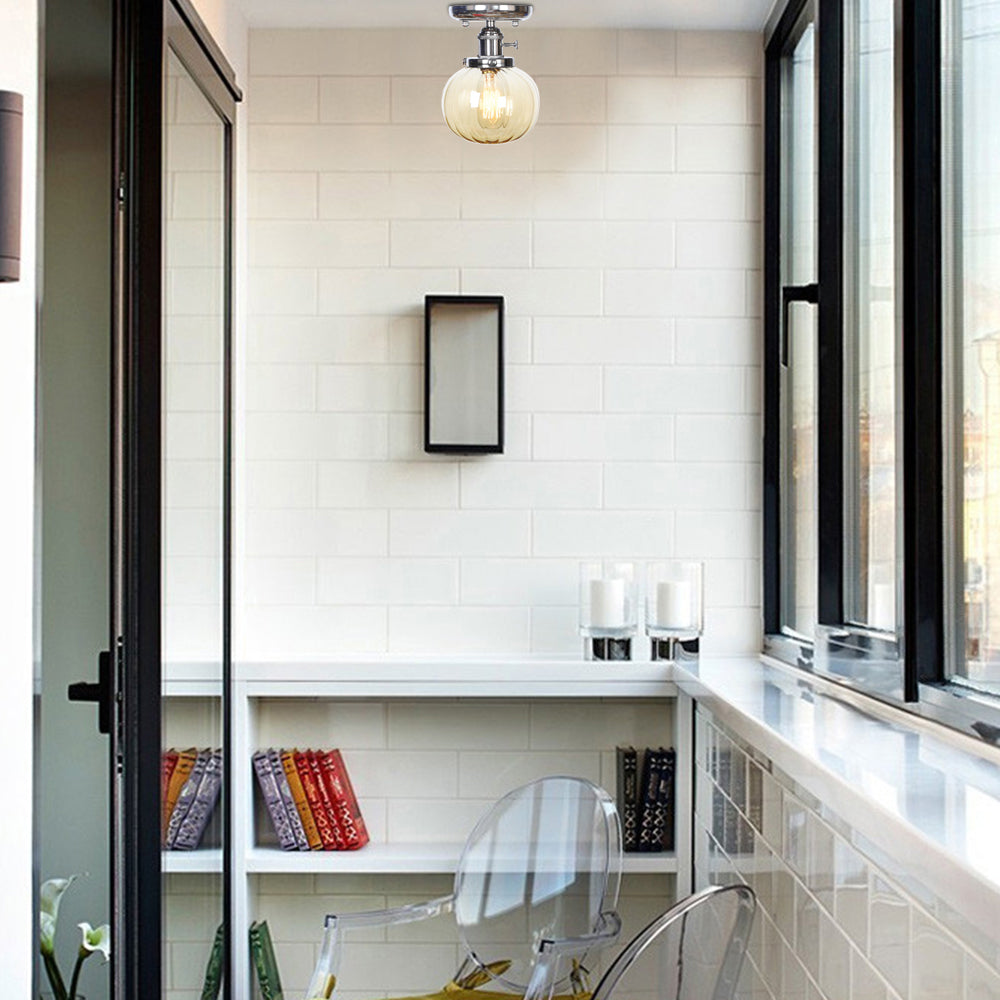 Industrial Chrome Ceiling Mount Light with Clear/Amber Glass Globe for Dining Room