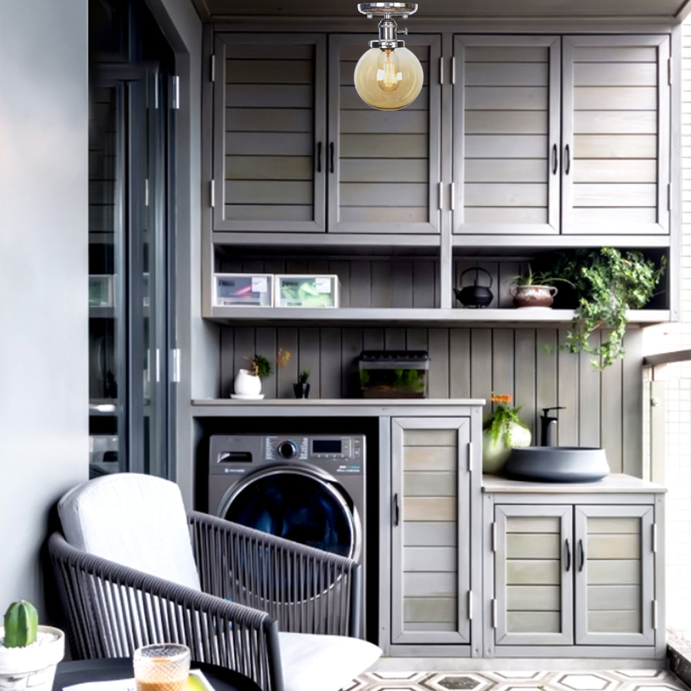 Industrial Chrome Ceiling Mount Light With Clear/Amber Glass For Dining Room Amber / Globe