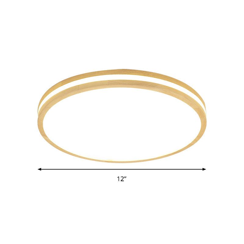 Japanese Style Flush Ceiling Light - Acrylic and Wood, LED Ceiling Lamp in Beige for Porch - 12"/16"/19.5"/23.5 inch Wide