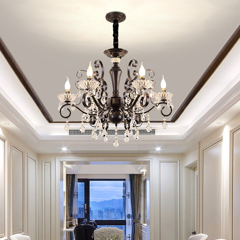 Modern Black Crystal Chandelier With Droplet - 3/6 Heads Down Lighting Pendant 6 /
