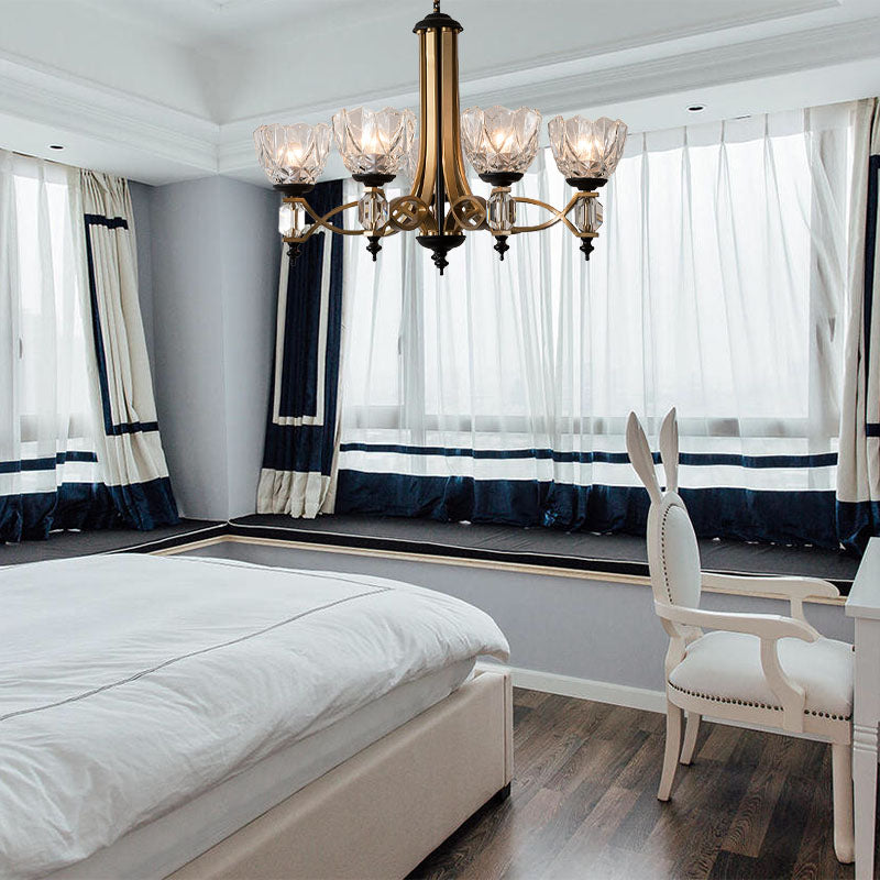 Brass Dome Chandelier With Clear Glass Shades - Modern 5 Heads Pendant Light Fixture